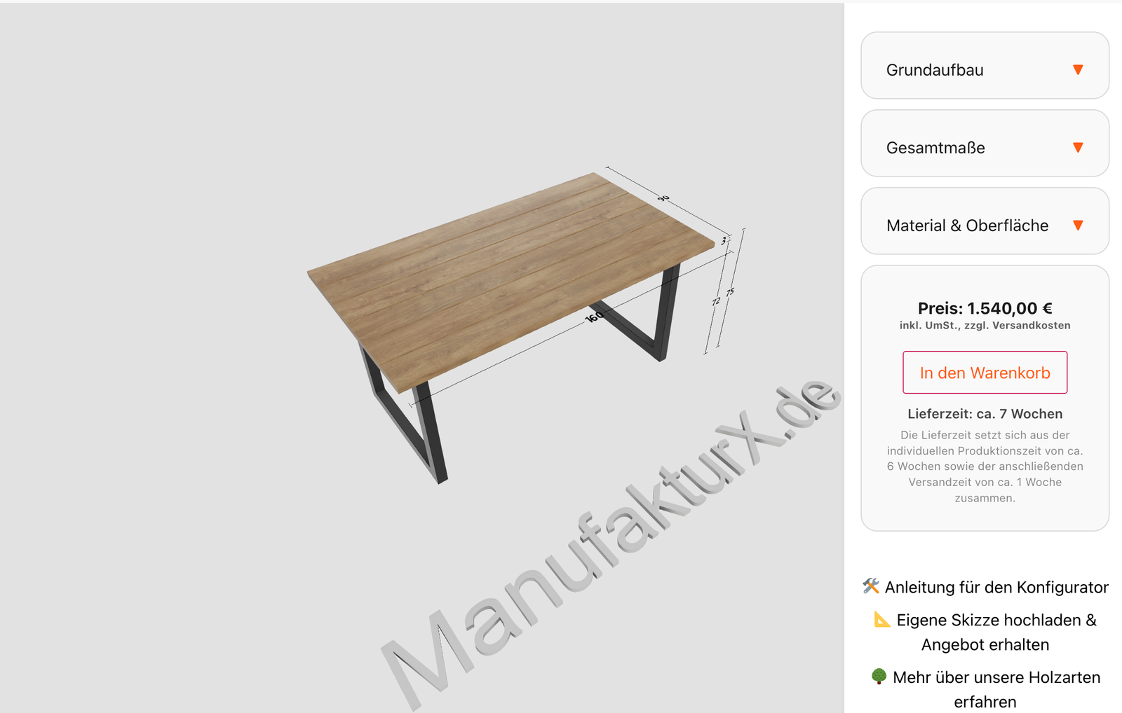Ogni pezzo è realizzato su misura. Configura in 3D e ordina direttamente.