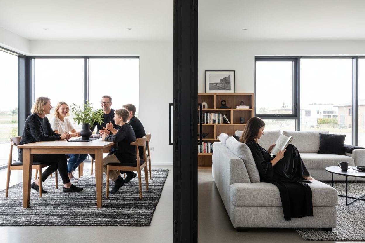 Nelle abitazioni moderne, la sfida è creare zone funzionalmente distinte mantenendo l'armonia estetica dell'insieme. I nostri divisori ambientali permettono di separare zona giorno e zona notte, area lavoro e relax, senza compromettere la circolazione della luce naturale.